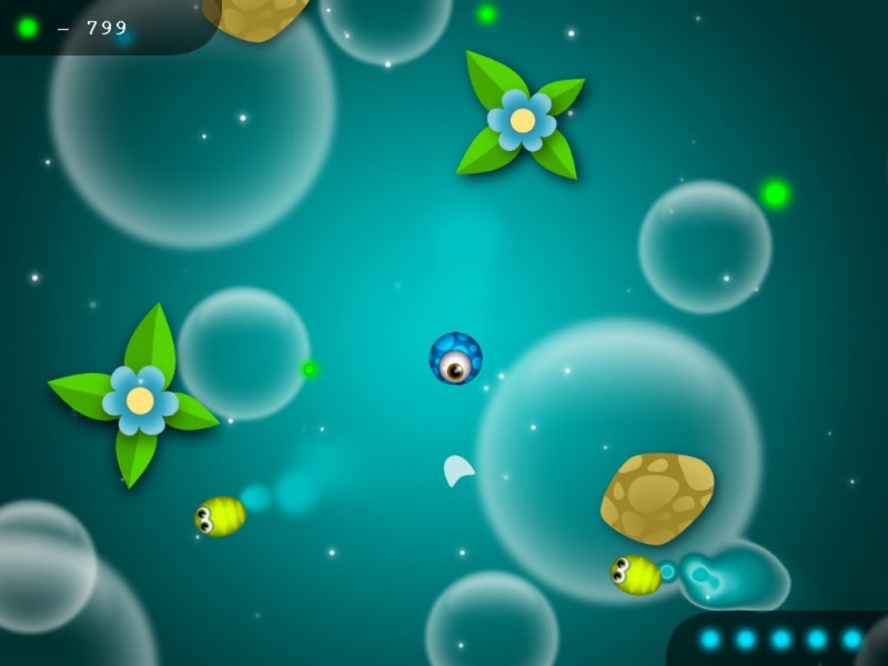 Игра Little Auqa World проведет вас через удивительный и опасный мир одноклеточных организмов. Чтобы пройти уровень ваш герой должен собрать все зеленые шарики - еду. Другие организмы тоже борются за выживание и с ними вам лучше не связываться. Одни клетки живут простой жизнью и им нет дела до вас. Другие же наоборот так и норовят съесть ближнего. Поэтому чтобы пополнить ваше здоровье вы можете собирать синие шарики - витамины. Кроме клеток также очень опасны растения, обладающие шипами. В помощь вашему герою в игре будут встречаться бонусы, каждый из которых на время дает вам определенный навык или улучшает уже имеющийся. Геймплей в игре достаточно прост: ваша клетка следует за мышью. Вам необходимо оберегать своего героя от столкновения с другими организмами и опасными растениями. Весь игровой процесс сопровождается приятной музыкой и удивительной графикой в самых ярких тонах.
