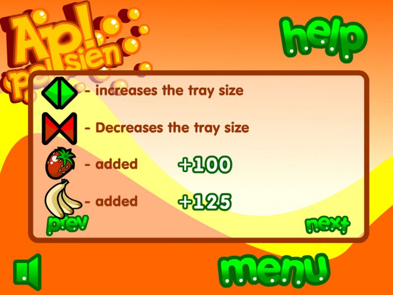 Год выпуска: 2008 Жанр: Arcade Разработчик: Eshatohin Издатель: Falcoware Платформа: PC Тип издания: Лицензия Язык интерфейса: Язык озвучки: Таблетка: Не требуется Описание игры: Игра в жанре Arcade. В твой ресторан завезли партию сочных апельсинов. Помоги повару перекидать все фрукты в кладовую ресторана. Смотри, чтобы ни один апельсин не упал на пол кухни. Собирай бонусы. Системные требования: ОС: Windows XP + Процессор : 1 ГГц Оперативная память: 64 мб Видеокарта : 32 мб Место на диске: 15 мб